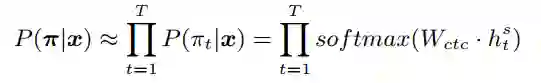 CTC 目标函数将最大化正确句子对应的所有合法路径的概率和: