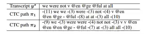 表1:给定语音对应文本,合法 CTC 路径的两个例子