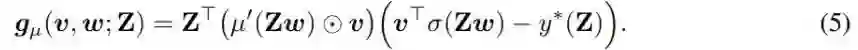 注意这只是用 g_µ(v^t, w^t; Z) 替换了时间 t 的真实梯度 (∂l / ∂w)(v, w; Z),其中的 t 是指时间步骤(或迭代)。