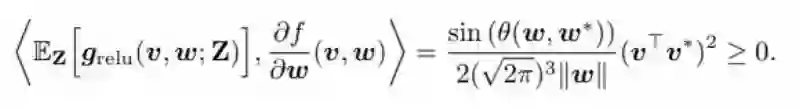 要让该算法收敛,EZ[(∂l / ∂w)(v, w; Z) ] 和 EZ[ g_{relu}(v, w; Z) ](粗粒梯度)必须同时消失。这只会发生在 (2) 式(即构建的问题)的鞍点和最小量处。(2) 式的最小量应该有 v = v* 且 θ(w, w*)=0。
