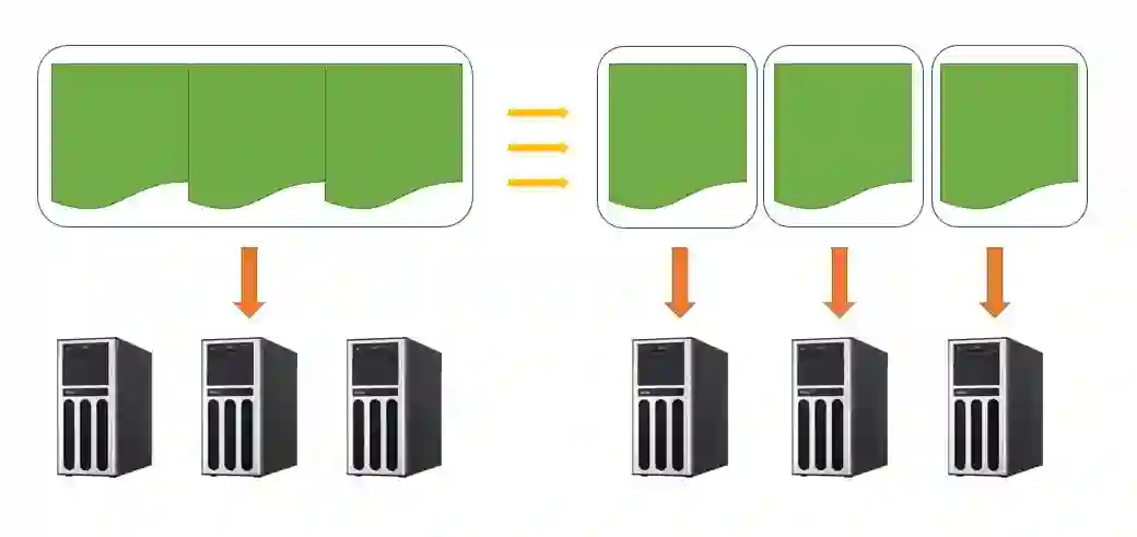 这相当于我把这14267条数据给打散了,放到所有机器上去各自执行一点,就像上面图中展示的那样,而且是没有规律的打散。所以我们只要知道分了多少片以及每台机器被分到的片数集合,即可完成这个分片功能。