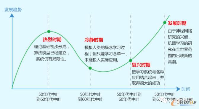 本阶段的研究目标是模拟人类的概念学习过程,并采用逻辑结构或图结构作为机器内部描述。机器能够采用符号来描述概念(符号概念获取),并提出关于学习概念的各种假设。本阶段的代表性工作有温斯顿(Winston)的结构学习系统和海斯·罗思(Hayes Roth)等的基于逻辑的归纳学习系统。虽然这类学习系统取得较大的成功,但只能学习单一概念,而且未能投入实际应用。此外,神经网络学习机因理论缺陷未能达到预期效果而转入低潮。因此,使那些对机器学习的进展抱过大希望的人们感到失望。他们称这个时期为“黑暗时期”。