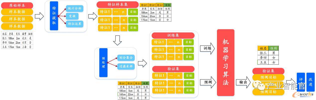 所谓机器学习过程,是指观察有n个样本数据组成的集合,并根据这些数据来预测未知数据的性质,那么在给定数据集(所谓大数据)和具体问题的前提下,一般解决问题的步骤可以概括如下: