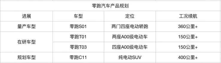 眼下,零跑已经规划了 3 个整车平台,分别为「T 平台(A00 级别)」、「S 平台(A0 级)」和「G 平台(A 级)」。