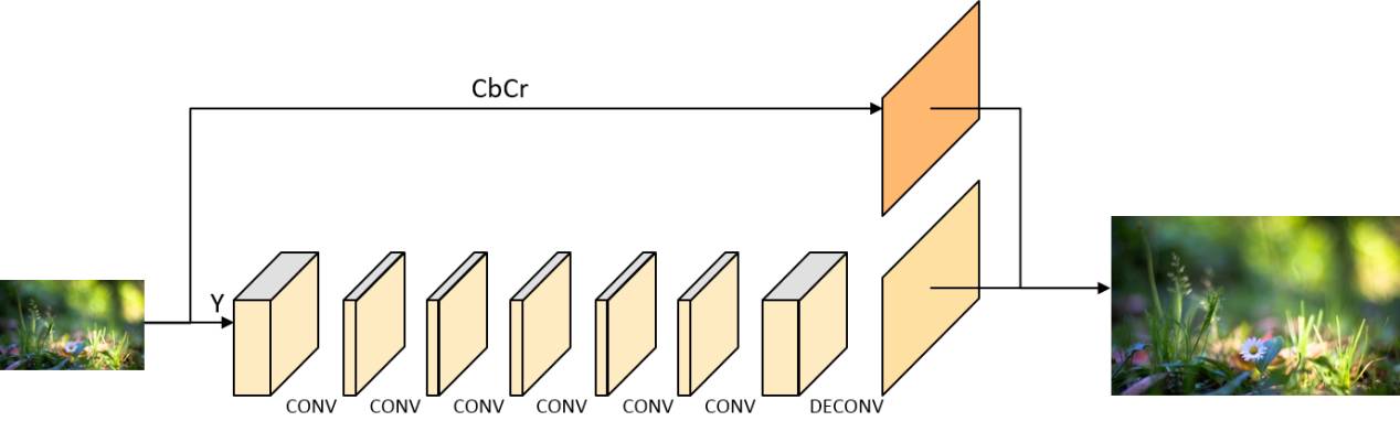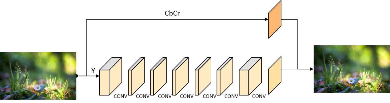 在模型输入方面,原始图片从 RGB 转换成 YCbCr 格式,其中 Y 是指亮度分量,Cb 指蓝色色度分量,而 Cr 指红色色度分量。CbCr 与 Y 通道分离后,HiSR 只对 Y 通道数据进行超分处理的方法提高处理速度。