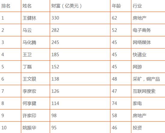华人富豪则没人能进前十,排名最高的是第 18 位的阿里巴巴创始人马云,净资产达 354 亿美元 。李嘉诚、马化腾和王健林分列 21、23 和 24 位,净资产分别为 332 亿美元、324 亿美元和 304 亿美元。