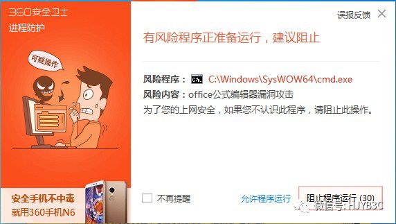 Office漏洞成黑客攻击利器 360安全卫士全面拦截防护