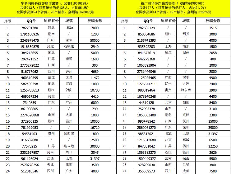 在佟女士从各个受害者维权群统计的不完全数据显示,受害者遍及北京、广州、深圳、义乌、上海、武汉等超过24个省份在内的70多个城市,涉案金额已经超过500万元。