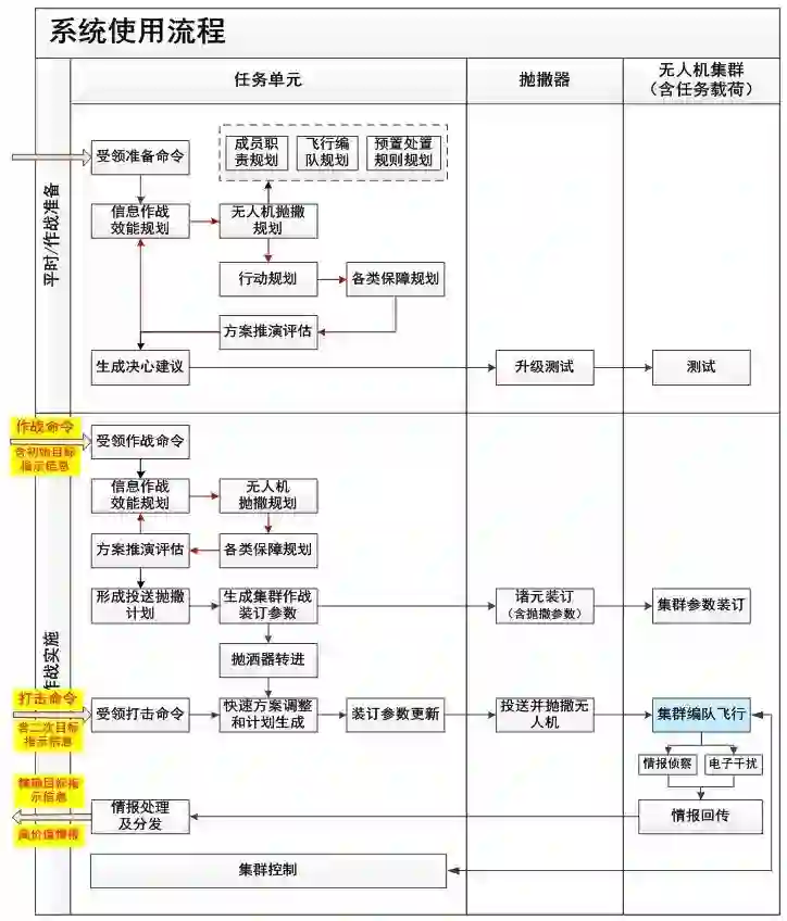 无人机集群C2智能系统使用区分两个阶段,一是平时或准备阶段,二是实施阶段。