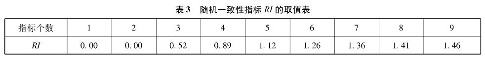 其中RI为随机一致性指标(此值固定,查表可得)。