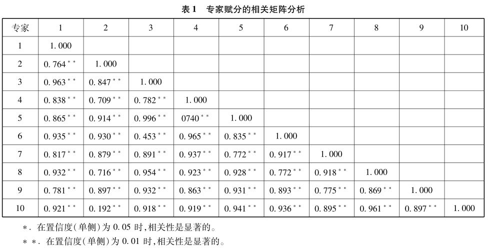 为了检验构建的26个评价指标是否具有内部一致性,在研究过程中采用10位不同专家对同一课例就26个指标进行单独赋分,其中教育技术研究人员(高校)4人,一线教师(高级职称以上)5人,教研员1人。并对两两之间进行相关性分析,得到如下相关矩阵,如表1所示。