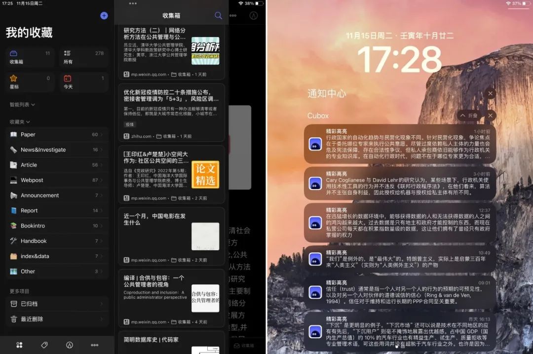缺乏阅读进度管理。日常使用 Cubox 剪藏的文章总是从「read it later」变成 「read it never」,而书籍也往往在由于各种事情放下一段时间后就没有继续阅读。