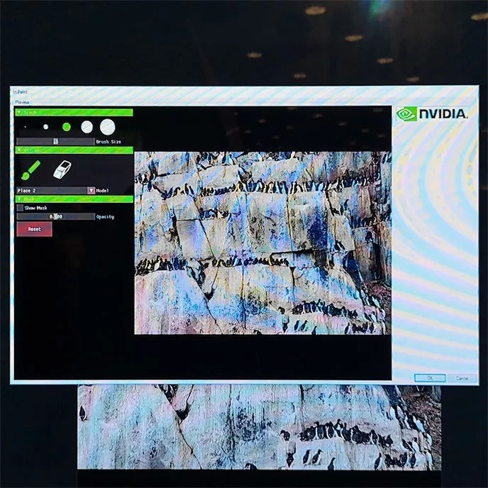 这个插件用AI增强了Photoshop的内容感知填充。英伟达演示的案例是,在陡峭的悬崖上绘制成群结队的企鹅,企鹅脚下的岩石看起来如真的岩石一样粗糙,看起来并不像用传统的画笔从附近区域复制过来的。