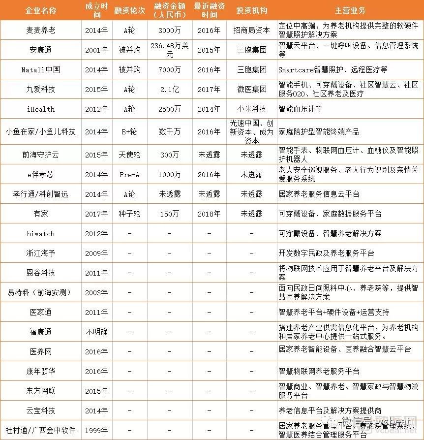 以下是动脉网记者列举的部分涉及智慧养老业务或服务的上市企业及初创企业。