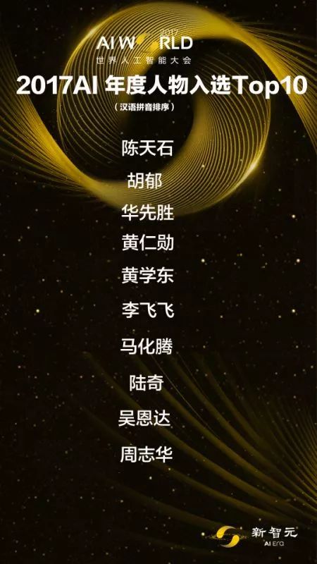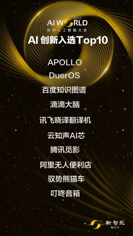 2017年9月,AI WORLD 2017世界人工智能大会 “AI 奥斯卡”Top 10 评选活动启动,引发了业界强烈反响, 最终获奖者由300多位新智元智库专家和30万读者共同投票选出。票数统计中,专家票权重为55%,读者票权重为45%。经过候选人提名、专家票选、读者票选、统计、专家评议,评出AI 奥斯卡的获奖名单: