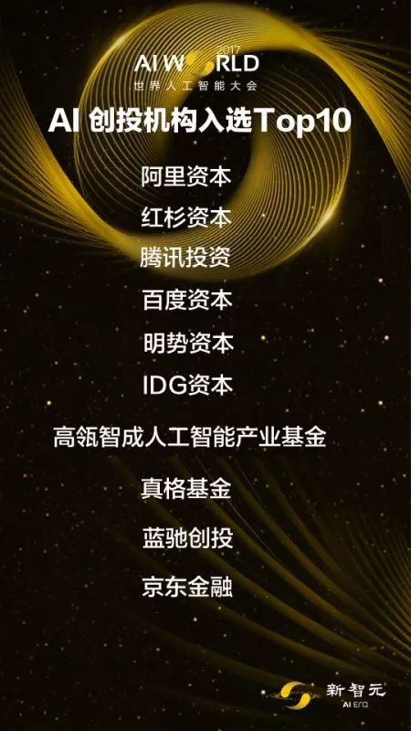 当下,人工智能已成为各大创投机构热捧的对象。资本的力量让AI从实验室迅速延伸到产业,推动着新兴技术在应用场景中释放商业价值。创投机构同时也成为初创公司核心技术及其商业模式的试金石,优秀的创投机构不仅资本雄厚,更具备独到的眼光和深厚的行业资源。新智元 “AI 奥斯卡”创投机构 Top10分别是:阿里资本、红杉资本、腾讯投资、百度资本、明势资本、IDG资本、高瓴智成人工智能产业基金、真格基金、蓝驰创投、京东金融。