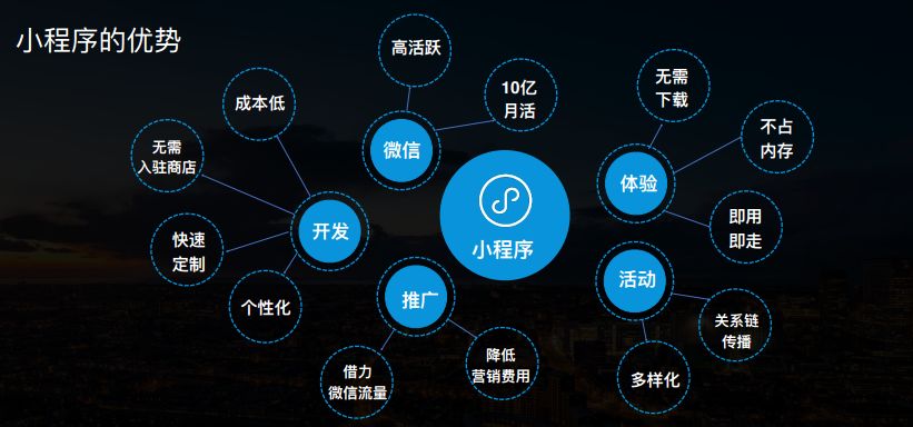 如果把小程序跟微信的统一帐号体系和微信社交关系以及微信的流量流转节点,特别是微信支付结合起来,就发现小程序形成了历史上最完美的商业闭环。