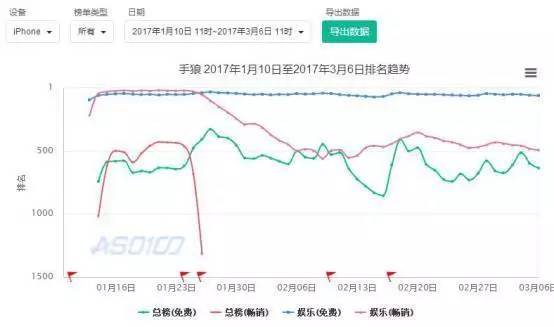 App《手狼》目前IOS免费总榜636,娱乐总榜61,于17年1月11日上线,经历5个版本,其榜单变化如下: