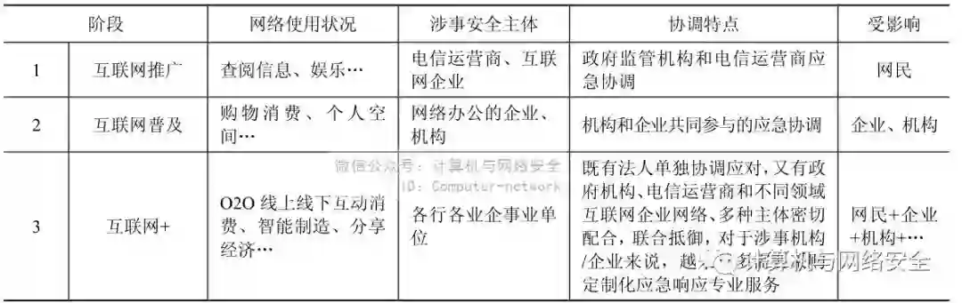 以往网络安全应急响应只和电信运营商、互联网企业和大众网民用户相关,但是随着“互联网+”时代到来,互联网成为很多社会生产的重要组成部分,而且越来越多的企事业单位采用网络化办公,网络安全应急响应已经不再局限在传统应急通信技术领域,也不再仅仅是国家公共安全管理部门的职责,而是成为各行各业企业、机构日常管理的一部分。