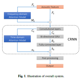 这篇文章被 ICASSP 2019收录,核心内容是作者作为一个参赛者对DCASE2017中的一个特殊语音事件检测任务的分析,作者的思路是利用attention机制,提取出声音信号中最为重要的特征,并且从单个frame的频谱特性( spectral characteristic)以及样本中多个frames的时间特性的角度设计注意力模型,使用maxpooling将一段声音中的关键特征抽取出来。