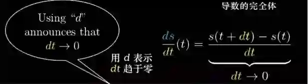 就是函数 s 的微小变化量除以 t 的微小变化量, 不过距离求导的真正含义还差那么一点点. 在纯数学领域, 导数并不是 dt