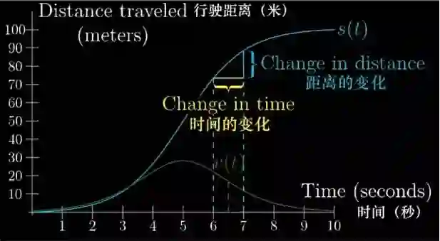 用以上的共识, 电脑只要知道里表示距离的函数图 s(t) , 它就能绘制出表示速度 v(t) 的函数图形了.