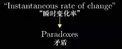 是不是感到有点矛盾, 那就对了. 当年微积分的创始人也和你有着同样的思维冲突. 如果你想进一步理解变化率的意义, 理解如何将它应用于各种开车, 或者其他科学场景, 就需要解决这一矛盾.
