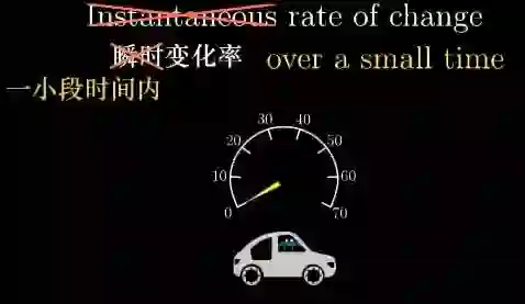 非常非常的接近 0 , 用这个狡猾的小技巧, 就可以让时间点的变化率变得有意义了, 这是不是很巧妙呢!