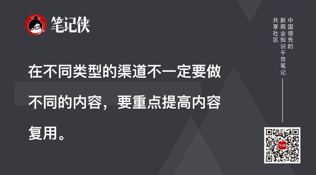 在不同类型的渠道不一定要做不同的内容,要重点提高内容复用。