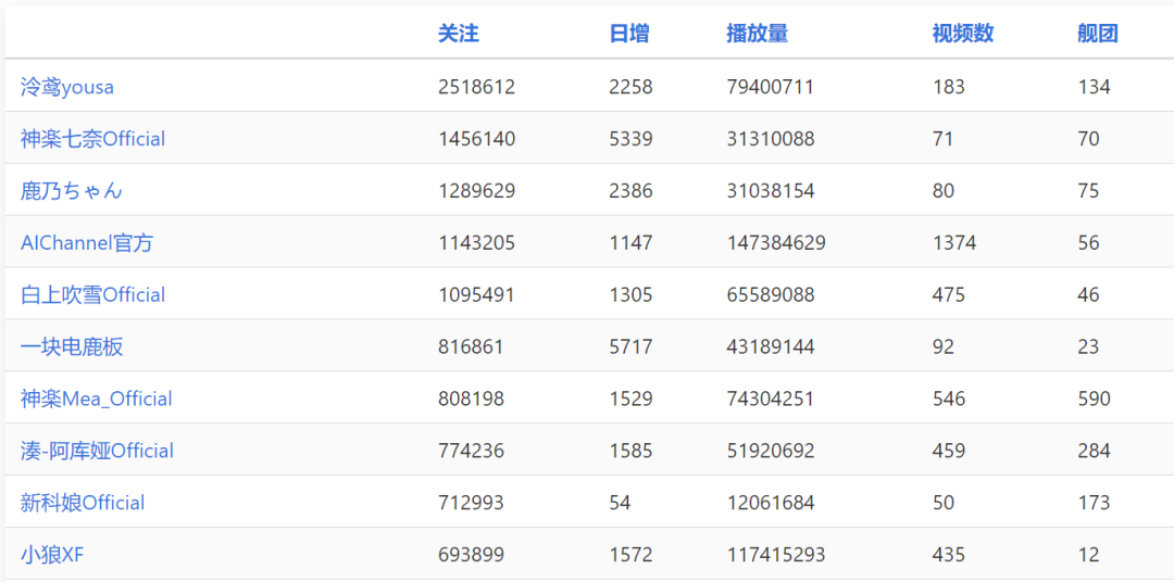 数据来自vtbs.moe,截至7月22日
