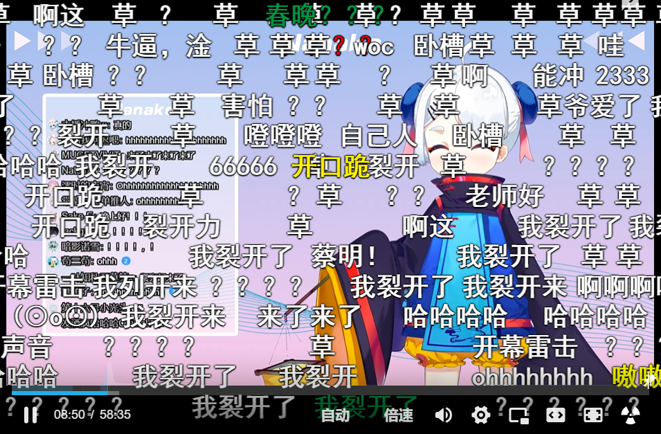 直播当晚,菜菜子Nanako开播仅25分钟便登上B站直播人气榜第一。同时,用户也迎来狂欢,直播间被“草”(意思是太好笑了)、“我裂开了”、“梦回春晚”、“著名声优”等弹幕不断刷屏。
