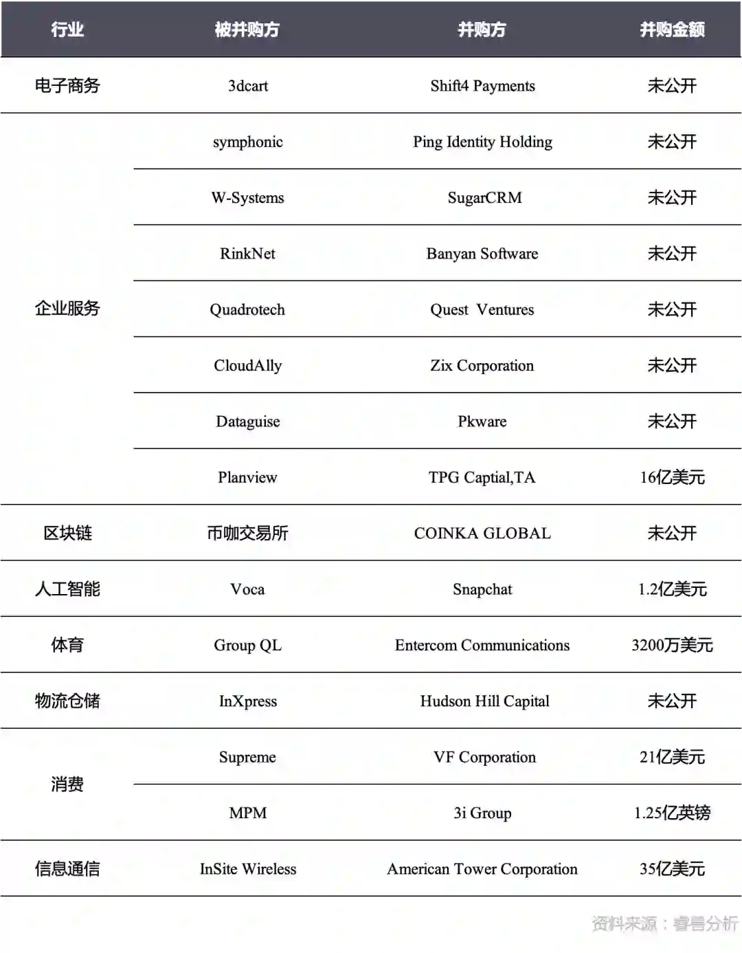 本周海外并购事件汇总