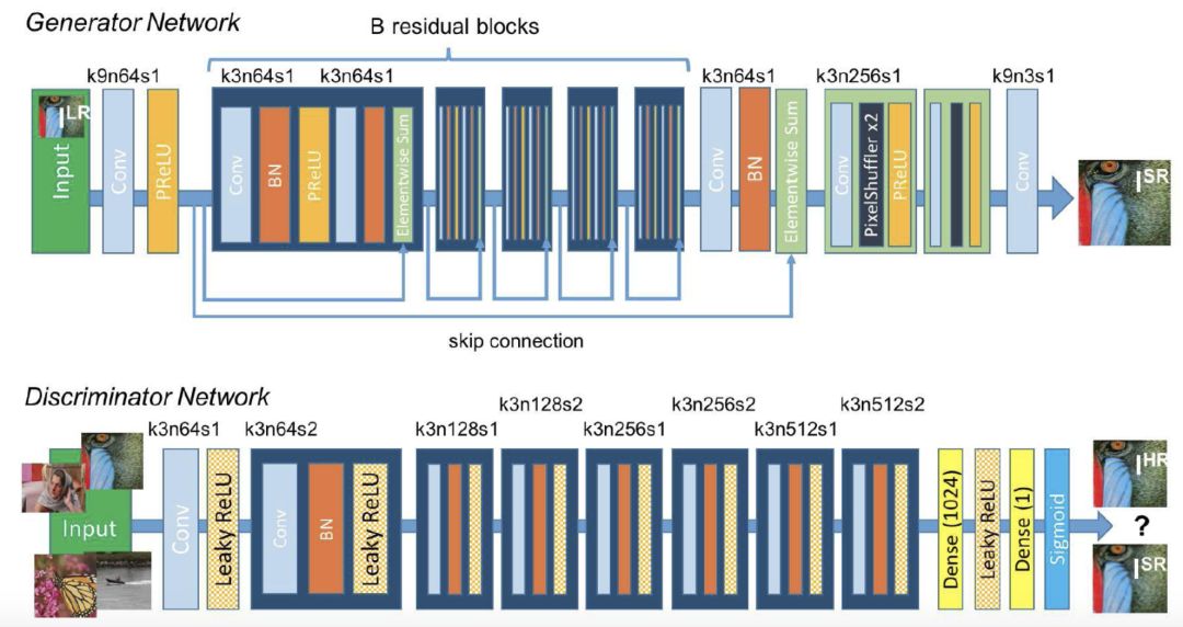 它可以利用感知损失(perceptual loss)和对抗损失(adversarial loss)来提升恢复出的图片的。