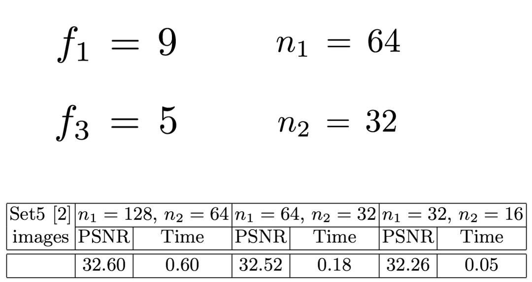 图像重构:恢复细节,得到清晰的高分辨率图像,卷积核为f3*f3;
