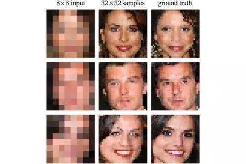 但是,有很多情况下,我们只有一张图像,无法拍摄多张,那么如何做超分辨率呢?这就需要用到机器学习了。比较典型的例子,就是在2017年Google 提出的一项“黑科技”。他们可以通过机器学习来消除视频图像中的马赛克。当然,这项黑科技也有一定限制,以下图为例,它训练的神经网络是针对人脸图像的,那么如果你给的马赛克图像不是人脸,就无法还原。