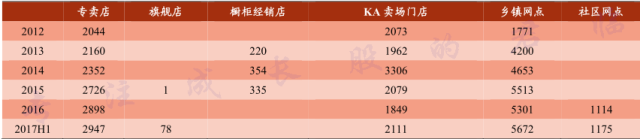 公开数据显示,2012-2017年,华帝的专卖店和KA卖场门店数量一直维持在2000家的规模左右;