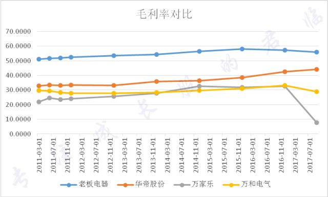 没有对比就没有伤害,再看看华帝竞争对手的毛利率,就知道华帝的管理层有多牛了。