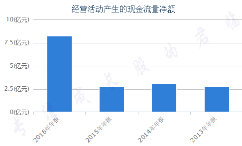 而华帝,这方面的表现一直优秀,历年经营活动产生的现金流量从未低于2.5亿,2016年更是高达8亿元。