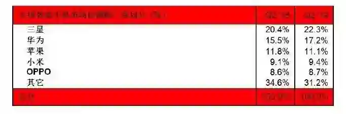 Strategy Analytics 报告表明小米在全球智能机的市场份额也从去年同期的 9.1% 增长至 9.4%。