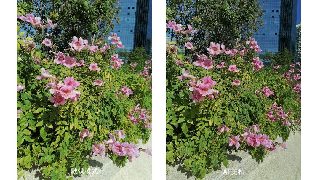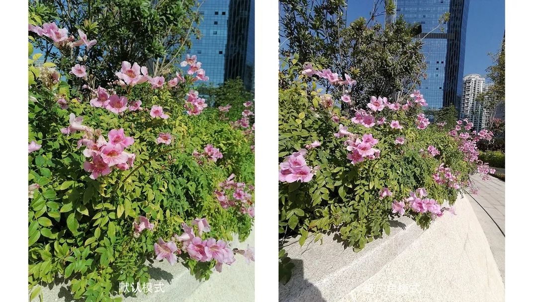 华为畅享10S内置 AI 美拍功能,在下面的照片中,左边是正常模式下的照片,右边是打开 AI 美拍的照片,场景被识别为“绿植”,可以发现,AI 美拍对于拍摄物体的色彩有着更加精准的还原。