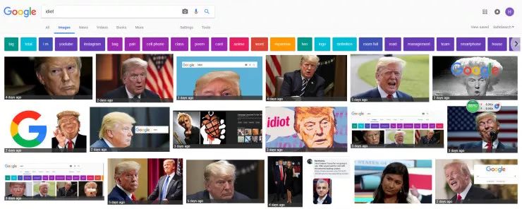 为何谷歌“idiot”出来的都是川普?