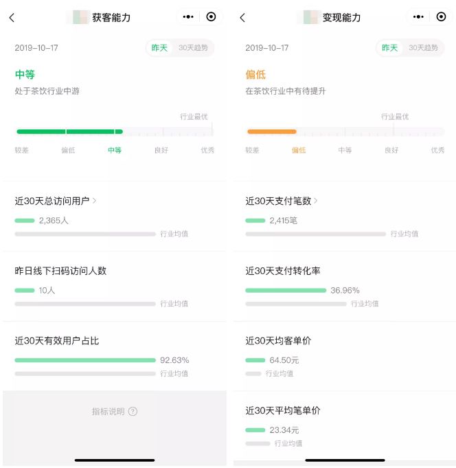 商户的管理者、业务执行者和开发者,可借此了解小程序在所属行业运营状况评估、关键指标展示、运营改善建议、行业案例资讯及能力开通指引等与行业相关的数据资料。
