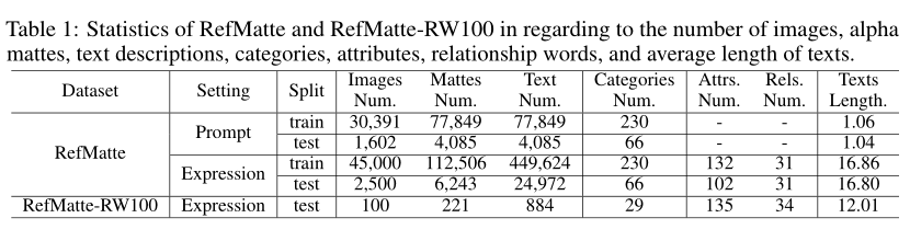 2.5 Statistics of the RefMatte dataset and RefMatte-RW100 test set
