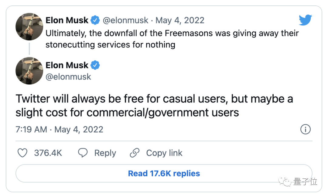 近日,马斯克发推称,Twitter将始终对普通用户免费,但政府和商业用户可能需要对其支付少许费用。