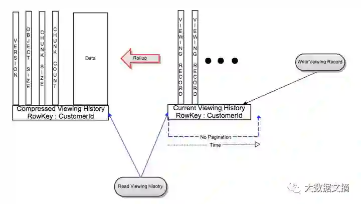 压缩或存档观看历史记录(CompressedVH):大量较早的观看记录很少更新。 这样的数据将被压缩以减少存储空间。压缩的观看历史记录存储在每行键的单个列中。