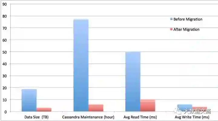 数据大小减少了约6倍,花费在Cassandra维护上的系统时间减少了约13倍,平均读取延迟减少了约5倍,平均写入延迟减少了约1.5倍。更重要的是,它为团队提供了可扩展的架构和空间,可以适应Netflix观看记录数据的快速增长。