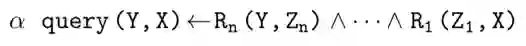每一个规则由多个约束条件组合而成,并且被赋予一个置信度 α,其中query(Y,X) 表示一个三元组,query 表示一个关系。
