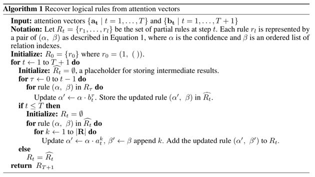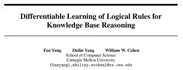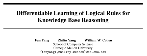 Citation:Fan Yang,Zhilin Yang, William W. Cohen. Differentiable Learning of Logical Rules for Knowledge Base Reasoning. ICLR 2017.