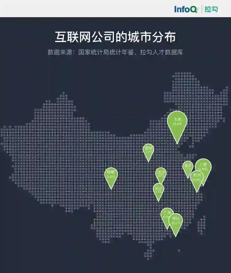 北上广深依然是互联网行业最活跃的城市。不过杭州,成都,武汉,西安和南京也增长很快,而且也都是大学云集的地方。只要有好的公司在二线城市设置研发中心,可以吸引一步部分一线城市人才回流,同时也能留住一部分高校人才。