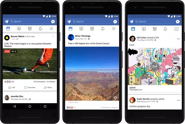 新闻提要支持多种视频新闻类型。有些类型的行为和外观与其他的有所不同。视频附件是一种常见的新闻类型,其中有常规视频、Facebook Live 视频、360 度视频、gif 或其他类型的视频,它们会附在一个普通的文章上。